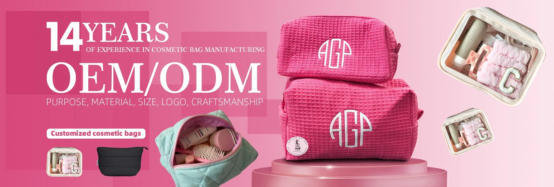 Custom Printed Waffle Embroidery Toiletry Beauty Pouch Bridesmaid Makeup Cosmetic Bag