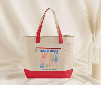 High Quality Wholesale Custom logo Zipper Pocket Print Letter Large Women Canvas Tote Bag