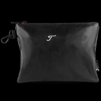 Travel Gear Professional Zippered Embroidery Golf Pouch Black Pu Leather Pouch